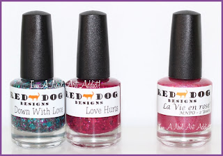 Les collections St Patty's Day et Mardi Gras de Red Dog Designs + 3 autres Red Dog dont le merveilleux LE créé pour les 2 ans du blog de notre amie commune Jen @My Nail Polish Obsession. J'ai déjà celui pour les 1 an, et les deux vont faire une super combinaison ^^